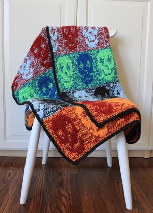 This pattern utilizes a simple technique I developed, called Reversible Image Crochet. This technique eliminates multiple ends (that need to be sewn in) and carrying multiple strands of yarn. It also gives you clearer images that are identical (in opposing colors) on both sides of your work! I hope you will give it a try. I really had so much fun designing and crocheting this blanket.