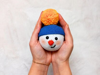 A detailed downloadable PDF pattern for crochet snowman head Christmas ornament! 22 pages with photos and step by step instructions.