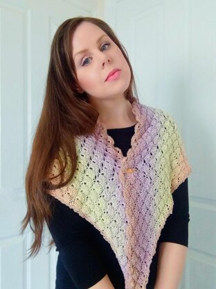 The Summer Sunset Shawlette is very easy and beginner friendly. This pattern is very easy to crochet, and features the shell stitch and a chain arch edging. It is a very beautiful and feminine shawl that is perfect for every season.