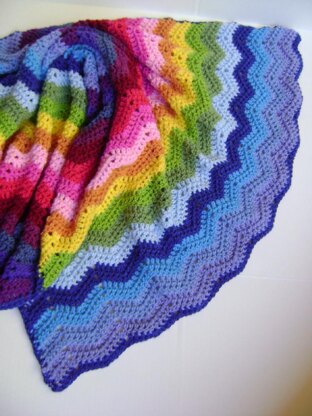 Gorgeous in technicolor! You can easily get 4 or more blankets out of all this yarn. Now THAT'S good use of your money and all this yardage. It measures 36” W x 46” L (91cm x 116cm).