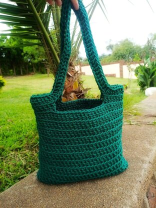 This is a tote bag done using double crochet. Materials: macrame/t-shirt yarn/ 265 yards, 4 stitch markers, 6mm crochet hook