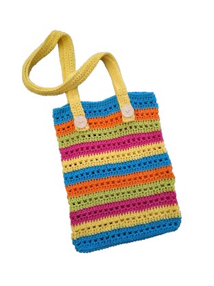 This is a very versatile tote, can be used for so many activities. It is easy to crochet using only the half double crochet and single crochet to complete. The "hot" bold colors make the bag look very stylish and fun, but you can use any color of choice. The bag is approximately 14" in length and 10" wide. You will need approximately 1 skein of each color, two large wooden or any other type of button and a tapestry needle to sew in the handles and button. It is all explained in my detailed instructions. Have fun crocheting this beautiful colorful tote today!