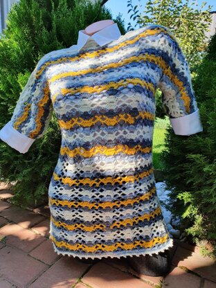 It works quickly and is easy to do. It is adaptable to any size and can also become a beach dress if you want. The yarn : Papatya Batik Crochet nr. 3, 5 mm For S size I use almost 4 skeins , but I eliminated the color black.