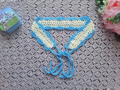 The size of finished headband (excluding ties): 2,5” x 19,5” (6 cm x 49,5 cm)