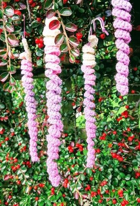 With this quick and easy crochet pattern, you will have an abundance of beautiful wisteria flower curls in no time and all. I’ve recommended a color scheme but wisteria flowers grow in many shades so why not try experimenting with your own pink and lilac tones. These delightful flower curls can be hung from houseplants, shelving, decorative branches, and weather permitting outdoor plants and pergolas. Why not make a few and see if you can fool your friends. An enthusiastic gardener will be delighted to receive such a thoughtful handmade gift and what about those fairies at the bottom of the garden. A few of these brightly colored wisteria curls will turn the bottom of your garden into a fairy haven.