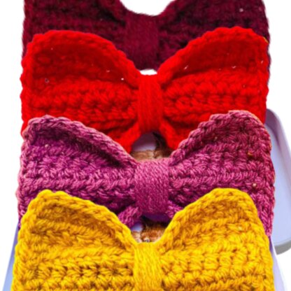 Thank you in advance if you choose to purchase this pattern. Once you've got the hang of it, it is incredibly versatile and will allow you to create allsorts of designs by using different colours, fibers, accessories or even a little sparkle - its a great stash buster! The photos you'll see are of my Autumnal bows (perhaps my favourite), but they also look great in metalic red and greens for the festive period.