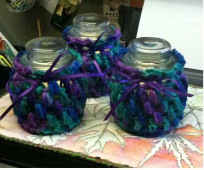 Purchased, small scented candles in covered glass jars are inexpensive and readily available. Crocheted covers using simple, basic crochet stitches can create these beautiful, easy to make small gifts for friends, family and for yourself. Use pretty colored worsted weight yarn and crochet them in a jiffy. Think holiday colors, Christmas, Halloween, Easter, 4th of July, or everyone's favorite color. Match colors to brighten bathroom, bedroom, anywhere. Great last minute small gift or stocking stuffer. They are like eating potato chips!