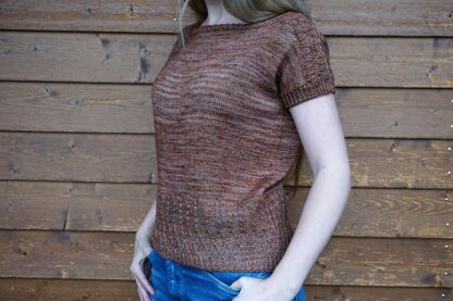 The Cross the Line Top is knitted seamlessly from bottom to top in the round with a twisted stitch cable hem. It starts with the twisted cable stitch pattern, following by an easy stockinette stitch section. After dividing front and back for the sleeves, there will be some short row shoulder shaping, following by another twisted stitch cable section. The shoulders are put together by a 3-needle bind off. There are no shaping decreases and increases along the body sides. It will be worn with approx. 20cm (10”) positive ease around the bust. Sample in Size S2 on an 84cm (33”) bust.