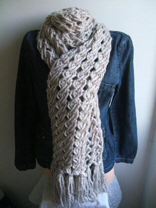 This is a super fun, quick scarf to make using those excess balls of yarn. You only need 2 balls of Creative Twist super chunky by Rico Design for this project but you can use any yarn that uses a 10mm needle. Smooth yarn works best. The pattern comes with the Scarf, Cowl, Neckwarmer with knitted bobble buttons, brimmed hat and fingerless mittens.