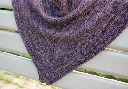 A super light, airy square shawl reminicient of a bandana or silk scarf. Easy to knit stockinette in the round with a fun garland lace edging. Wear it folded and tied, over your shoulders or any way you’d wear a bandanna! This shawl would also make a beautiful baby or lap blanket worked in fingering weight or heavier yarn for a larger finished size. Charted and written directions.