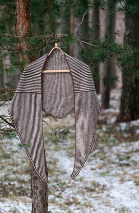 This is an elegant two-colored shawl knitted in wool. Wrap body is worked in one piece in garter stitch. All parts of wrap body are joined as you go along and shaped with short rows (+ increasing and decreasing of center part). The border is worked to the wrap later.