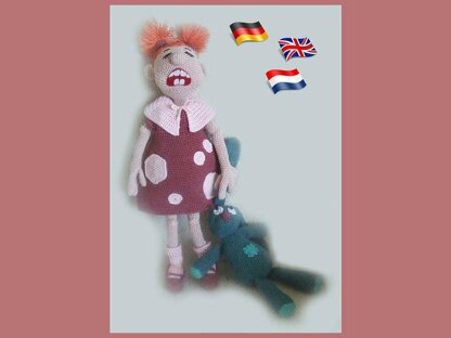 ENGLISH * Simple pattern if you know how to crochet Magic Ring, chain , slip stitch, single crochet, half double crochet and double crochet. * This manual is available in English, Dutch and German. * The Doll is 40 cm (hook size 2). * The manual is very detailed and contains many photos.* If you have any problems and / or questions about my instructions please contact me by email. Attention! This is a crochet pattern, not a finished product