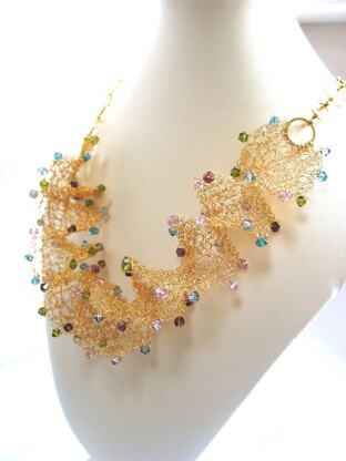 The knitting pattern will make the wire automatically twist to the left to create the helix effect, there is no manipulating of the wire afterwards, and the knitted piece will retain its shape. This pattern is suitable for an intermediate knitter.