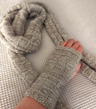 This knitting pattern offers a delightful combination of a textured scarf and stylish fingerless mitts, perfect for both beginners and seasoned knitters. Utilizing a straightforward approach, this effective pattern features an engaging mix of simple knit and purl stitches that create a unique texture. The fingerless mitts are knitted seamlessly in the round, ensuring comfort and ease of wear. To support your crafting journey, helpful YouTube videos are available, along with a vibrant Facebook community where you can connect with fellow knitters. Whether you're looking to keep warm or make a thoughtful gift, this pattern provides the perfect blend of functionality and style. Happy knitting!