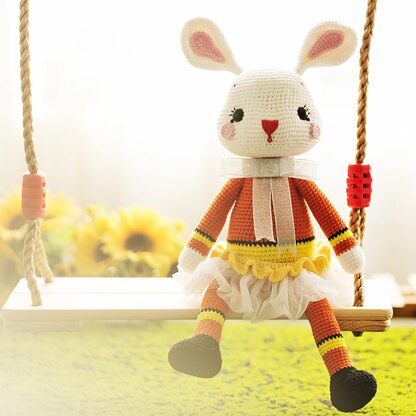 Size: The finished Fire-fighter Bunny stands approx. 45 cm, 17.7 inches tall (sitting state about 30 cm). Certainly, the thinner yarn you use, the smaller the doll will be.