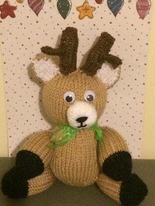 A cuddly Reindeer ready to be cuddled for Christmas, I have also added a green ribbon around its neck to make it have a lovely Christmas charm but it can be used all year round, its cute and perfect size for little kids and cuddling.