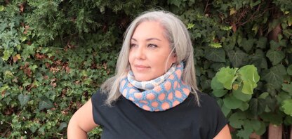 El cuello se comienza con un montaje provisional, tiene un borde en i-cord y se basa en unos hexágonos que se realizan con puntos deslizados. Para finalizar se une la labor con una unión invisible o kitchener stitch.