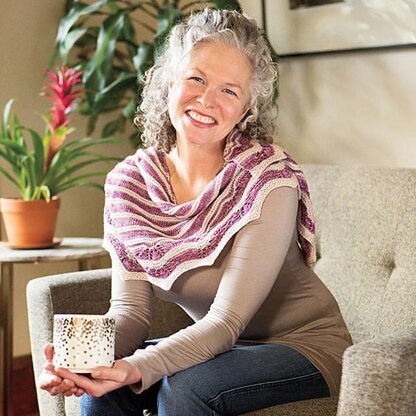 An easy-to-memorize edging uses directional decreases to coax the Garter stripes into cloudy rippled waves. This is a fun and easy knit that strikes the perfect balance of car or TV knitting, with an engaging edge treatment. The Cumulus Shawl is a shallow, semi-circular wrap worked from the top down.