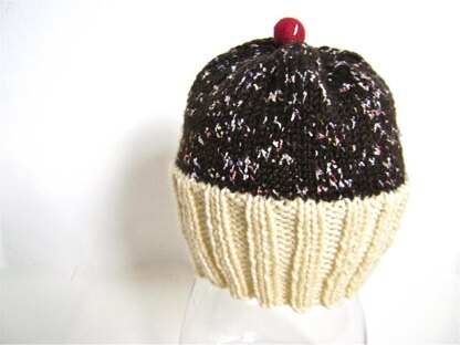 Serve this hat in a cupcake box to really make it special! Easy pattern you knit in the round, then add the cherry on top. The ribbed portion lends itself to many years of wear due to its stretchability. It's a breeze to keep clean. Try knitting the “liner” in pink, blue or red!