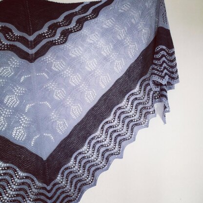 Das Originaltuch ist aus Seide (Sedaca/Wollerey, 250m/50g) gestrickt.