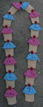 This is an original knitting pattern for how to make a Cupcake Scarf. The pattern includes instructions for how to make both cherries and strawberries, so you can choose your favorite toping.