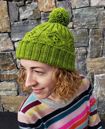 Cupola, combining plush ribbing and an intricate diamond cable, is the perfect gift for men and women alike! Just choose a single brim or a double brim. Knit Cupola in the round from the bottom up. The cable pattern is charted and written out.