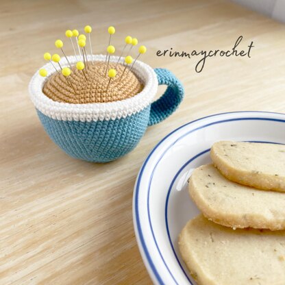Learn how to crochet your own Cuppa' Coffee Pincushion with this easy PDF pattern. Pattern includes detailed step-by-step instructions with photos to crochet the pincushion.
