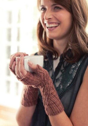 These pretty mitts are cleverly designed, with a lace pattern that travels around the hand and up the thumb.