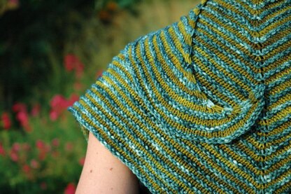 This shawl offers the freedom to make wild pairings of oddballs, striping yarns, gradients or mixed and matched bits.