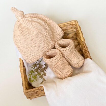 Knitting Pattern Baby Booties & Knotted Bonnet This lovely newborn set is quick and easy knit! Size: 0-3 Months Skill level: Beginner The pattern is easy to follow with coded instructions, explains row by row. You will be purchasing an instant download PDF of our originally designed pattern in English.