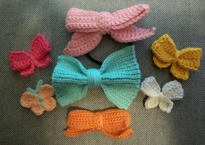 - You can use different materials and weights to crochet these lovely bows to best match your needs. You can use glue gun to attach the bow to hairpin.