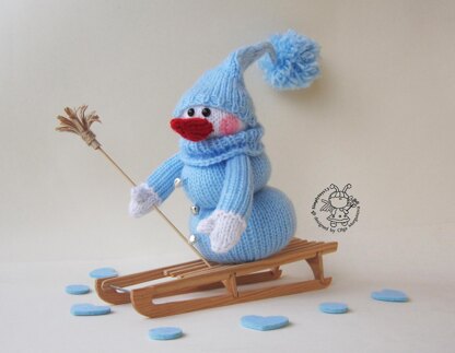 Materials needed • 4 double-pointed needles in a size suitable for the yarn weight you are using. I recommend using needles a size or two smaller than the yarn calls for, to produce a firm fabric. İ used Needles size 2,5 (3mm) • Red yarn acrylic "Flora" company Kartopu (230 meters / 100 grams) for the nose • White and Blue yarn acrylic "Flora" company Kartopu (230 meters / 100 grams) for a snowmen • A little brown yarn for mouth • Plastic eyes or 2 pins • Stitch holder • Broom sticks length 10cm • Jute for brooms • 3 bells