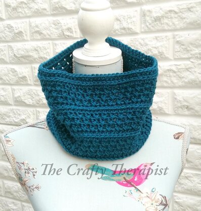 This pretty cowl is worked in the round and uses a lovely stitch combination of half double crochet and crossed half double crochet along with the 3rd loop method to create eye-catching raised lines.