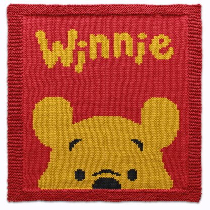 Knit a bit of childhood charm with this Winnie the Pooh Block! Inspired by everyone’s favorite bear, this cheerful design brings Winnie’s gentle charm and cozy spirit into your handmade projects. Worked flat with a neat garter stitch border framing the smooth stockinette center, this Winnie the Pooh square is perfect for kids’ blankets, playful pillows, fun tote bags, nursery wall hangings, or as a cute detail on a sweater.