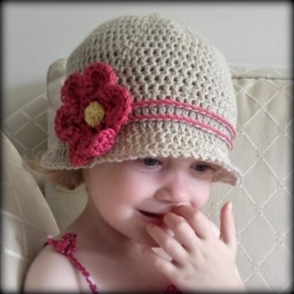 The perfect hat for having fun in the sun! This cloche-style hat will keep your little one looking cute, while helping to shade her from those harmful rays.