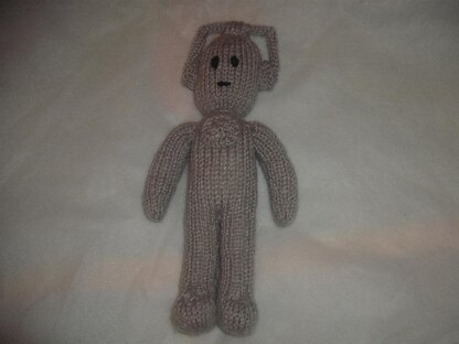 7 inch cyberman, using less than an ounce of yarn and quick to knit up so you can easily make your own mini army