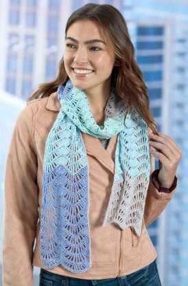 Dainty Feather & Fan Scarf in Red Heart Croquette - LW6393 - Downloadable PDF