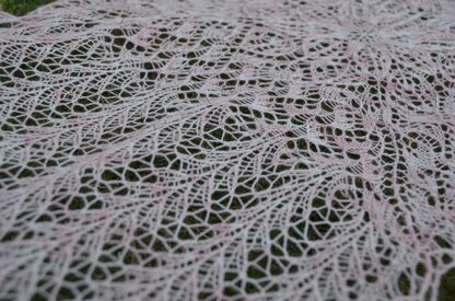 After one lovely sunny week in Trondheim (in March) and I thought spring had sprung. However I was oh so wrong, as we then got several inches of snow! The snow and cold kept coming while I longed for spring, and this shawl is the result of that! DÁIRÍNE is derived from Irish Gaelic dáire meaning "fruitful, fertile". This stole is knit in three pieces and grafted together using the kitchner stitch. Sides A and B are knit from the bottom up, the center section is then worked in the round.