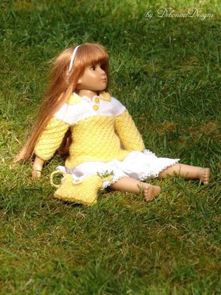 Daisy Chains a textured stitched tunic sweater that makes use of an easy to achieve star stitch pattern with yoke featuring front button closure and stylish collar, perfect for lazy days comes complete with a matching tote bag, an essential accessory for plucking daisies and making daisy chains suitable for late Spring/Summer wear featured in volume one of my latest book publication, Kalendar Kidz just released June 2015