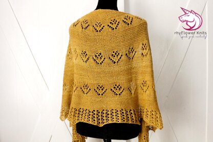 This shawl pattern shines well with solid, semi-solid, or lightly-variegated/speckled yarns due to the lacework with the daisies – which will get very lost in busy yarns. If you’re wishing to use a busy variegated yarn with this project, I recommend limiting it to the garter portions of the shawl where it will not compete with the stitches and using something more toned down in the daisies and final eyelets sections.