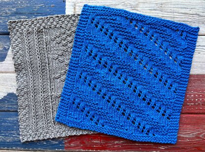 This pattern has two different stitch patterns. They are well suited for the knitter who is ready to move beyond K and P, and try yarn overs (yo) and different methods of decreases. The instructions are written, and charted. Use 100% cotton worsted weight yarn for maximum absorbency. These instructions produce a dense fabric that wears well.