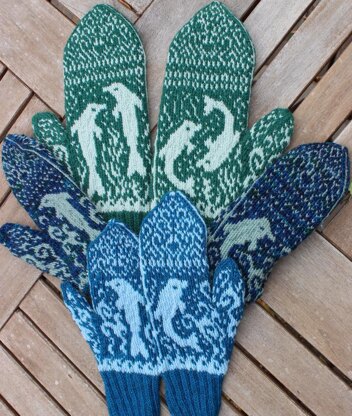 Perfect for the person loves the sea and the graceful dolphin. Dancing dolphin mittens pattern comes in three sizes: small, medium and large. Inspired by images of dolphins in Polynesian art, this mitten pattern incorporates negative ease for a snug warm fit that lets you carry the dolphin’s delightful playfulness into a cold winter day. The pattern features a different dolphin motif for each hand, a design of water spray for the thumb and an abstract wave pattern for the palm motif. The pattern comes with charts for each size with two design options for the medium size. There is a matching hat pattern to complete the ensemble.