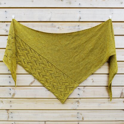 The shawl is an almost symmetrical triangular shawl worked from the point sideways. The decorative edge is a simple pattern using basic stitches such as knit, purl, yo, ssk, k2tog, k3 tog and psso.