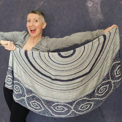 When you reach the right length, the shawl is finished with a gorgeous mosaic border in a pattern that reminds of spiraling Galaxies, attached to the shawl body while you knit.