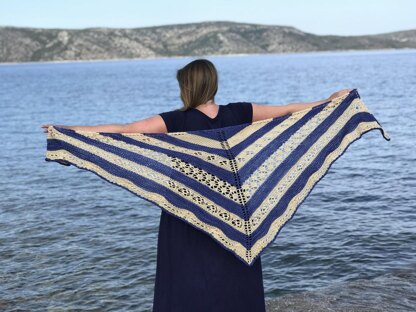 Take a walk through morning streets of dappled sunlight wrapped in the hug of a big, cosy shawl. Dappled Days was inspired by the start of a new day and the promises it can bring. As the sunlight filters through the leaves, paths become illuminated with a million patches of light, each one lighting the way to something new. These tiny pools of light are reflected in the simple lace stitches of the Dappled Days shawl, and the straight and bold garter stitch stripes are horizons expanding before you.