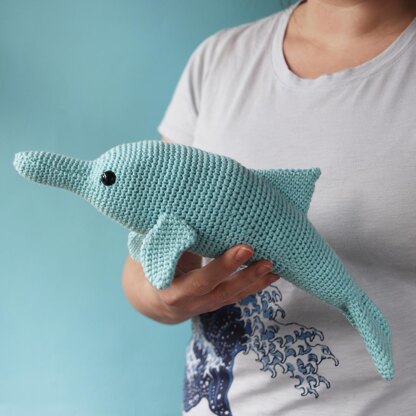 The dolphin made in DK weight cotton yarn and 3.5mm hook will measure around 38cm/15in long.
