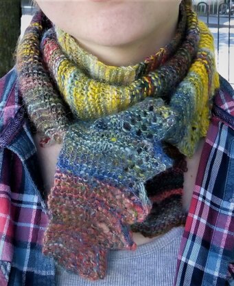 The shawl is a shallow triangular shape with lace edging knitted on as you work the body of the shawl. It is a quick knit using 100g of fingering weight yarn.