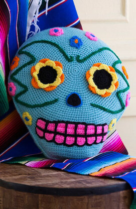 Day of the Dead Pillow in Red Heart Super Saver Economy Solids - LW4904 - Downloadable PDF