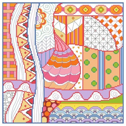Designed by: Kooler Design Studio. Why should coloring book fans have all the fun? Made to ease your stress and get you inspired with every wave! If you are a fan of mandalas and coloring books for grownups then you are just going to love this chart. Features a combination of patterns reminiscent of Japanese kimonos with modern and bright colors. Collect all six!\n