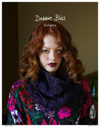 Debbie Bliss Boheme is a knitting pattern booklet that showcases Bliss's Boheme yarn, a mix of wool, acrylic and polyamide, in 11 designs for women.